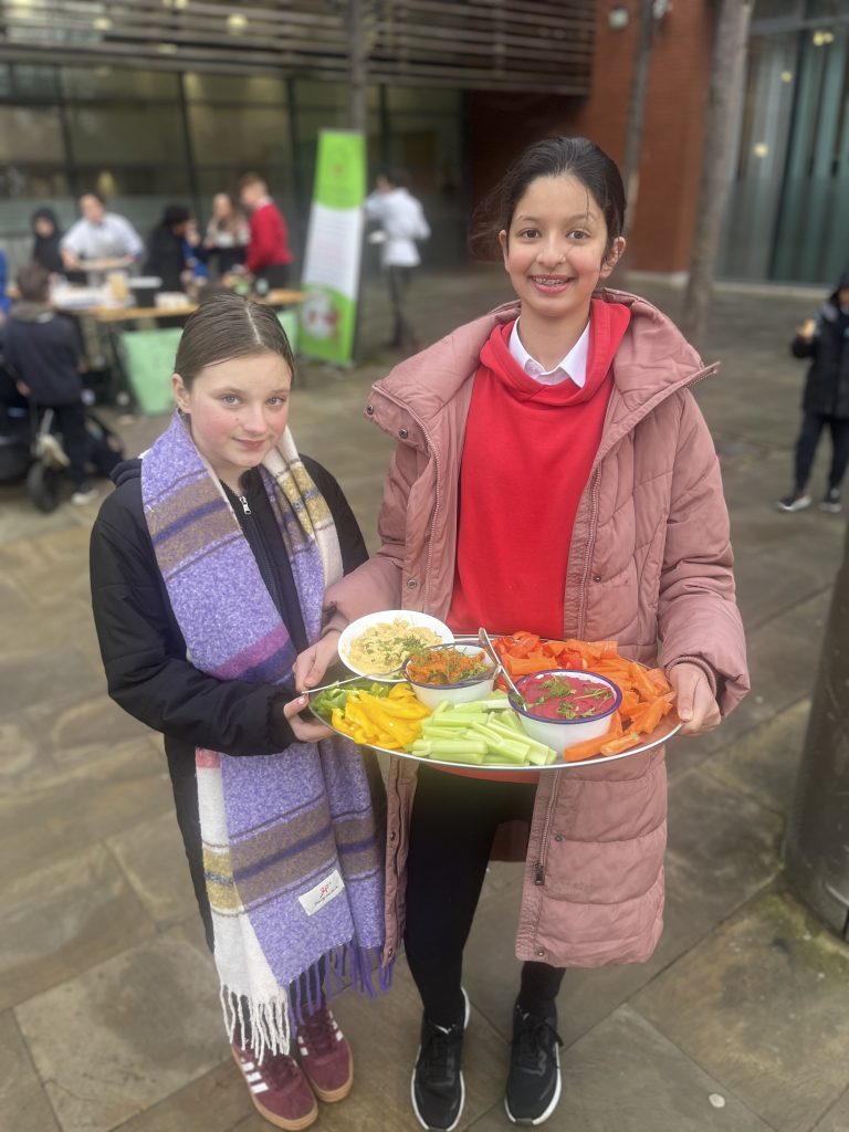 Families were also invited to take home a seasonal veg box to encourage some creative home cooking. The boxes included mushrooms, brussel sprouts, potatoes, carrots, parsnips, onions, broccoli and chilli — with some ingredients completely new to the households receiving them. To go with the veg, pupils proudly handed out the recipe cards they’d written themselves, sharing ideas and inspiration for cooking the ingredients at home.
